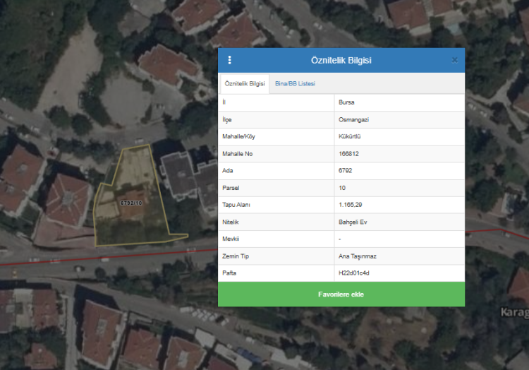 Arka kısmı Çekirge Caddesine cepheli olan binanın 4 katlı olduğu, müştemilatı ve bahçesi bulunduğu belirtildi.