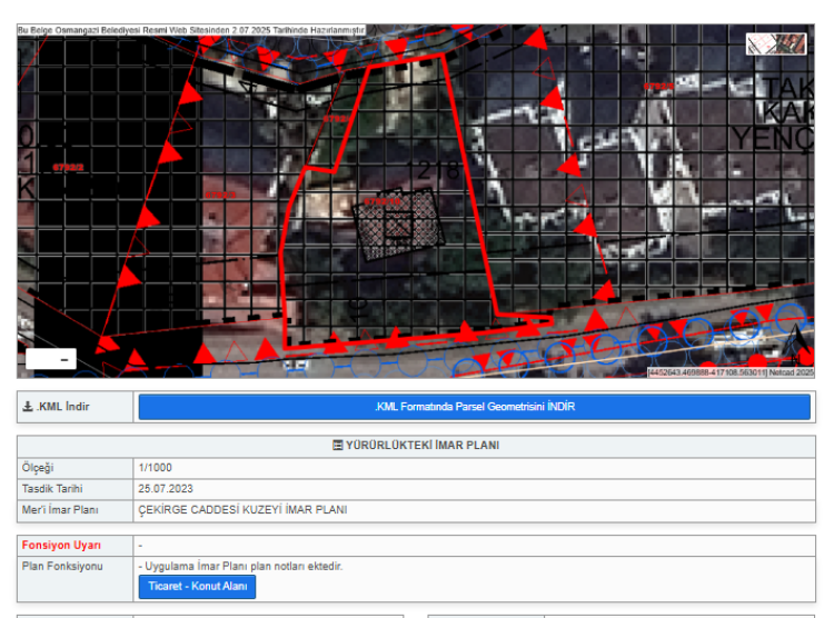 Söz konusu parsel Çekirge Caddesi Kuzeyi İmar Planı'nda Ticaret-Konut Alanı olarak yer alıyor.