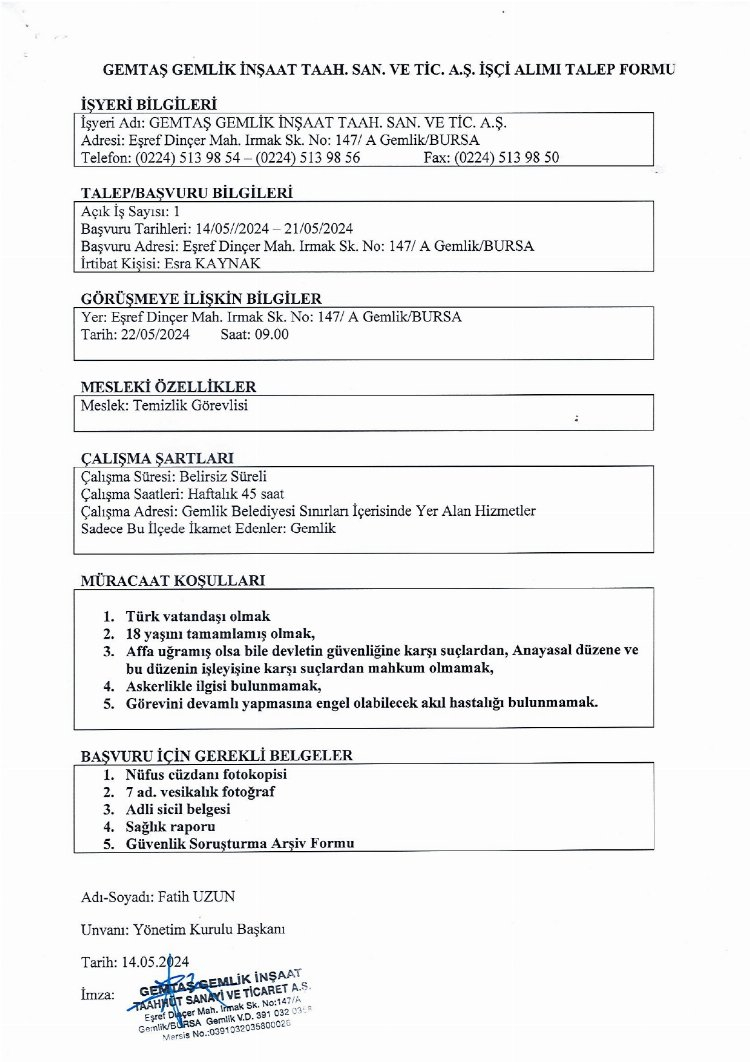 Özel sektördeki çoğu kurumun verdiği asgari ücretin neredeyse 2 katı maaşı veren ve sosyal haklarıyla özel sektörü sollayan kamu kurumlarının başvuruğa açtığı iş ilanlarının süresi sona eriyor. Gemlik Belediyesi 1 temizlik görevlisi; Harmancık Belediyesi 10 temizlik işçisi, İnegöl Belediyesi 1 engelli temizlik görevlisi, 3 Türk Dili ve Edebiyatı- Psikolojik Danışmanlık ve Rehberlik veya Bilgi ve Belge yönetimi mezunu işe alacak.