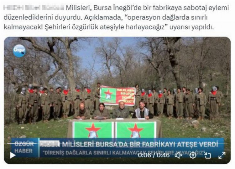 Bölücü terör örgütü PKK, Bursa'daki bir fabrikada meydana gelen yangını üstlendi. İşte ayrıntılar...