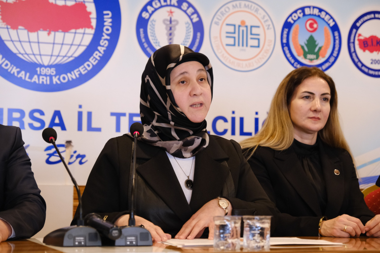 Memur-Sen ve Eğitim Bir-Sen Kadın Komisyonu Bursa Başkanı Nermin Polat, Memur-Sen İl Temsilciliği'nde 28 Şubat sürecine ilişkin bir basın açıklaması düzenledi. Basın açıklamasına; Memur-Sen Bursa İl Temsilcisi ve Eğitim Bir-Sen Bursa 1 Nolu Şube Başkanı Ramazan Acar, Toç-Bir-Sen Bursa 1 Nolu Şube Başkanı Cihan Akyaka, Diyanet-Sen Bursa 1 Nolu Şube Başkanı Zekeriya Turunç, Engelli-Memur-Sen Bursa İl Temsilcisi Hüsni Bayram Kol ve Memur-Sen üyesi sendikaların temsilcileri katıldı.