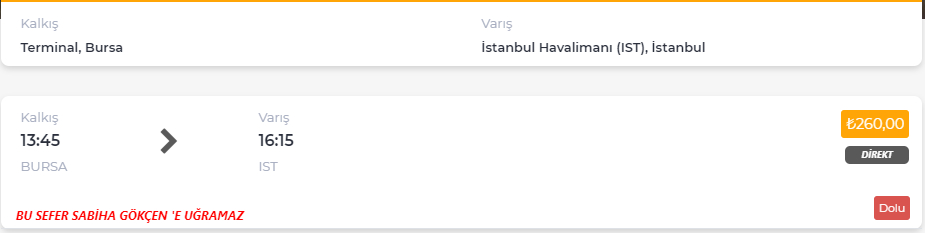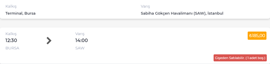 BURSA TERMİNAL - SABİHA GÖKÇEN HAVALİMANI