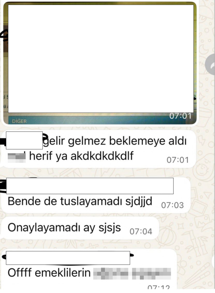 Öztürk, iddiaların yalnızca veri paylaşımıyla sınırlı olmadığını belirterek, “Ekran görüntülerine göre emekli bir yurttaş, telefonda işlem yaparken tuşlama yapamadığı için personel gruplarında alay konusu yapılıyor. Yaşlılığıyla, çaresizliğiyle dalga geçilen bir emeklinin onuru ayaklar altına alınıyor. Personel ise emeklinin tuşlama yapamamasına ‘emeklilerin ağzına s…’ diyerek tepki gösteriyor. Bu büyük bir skandaldır!” dedi.