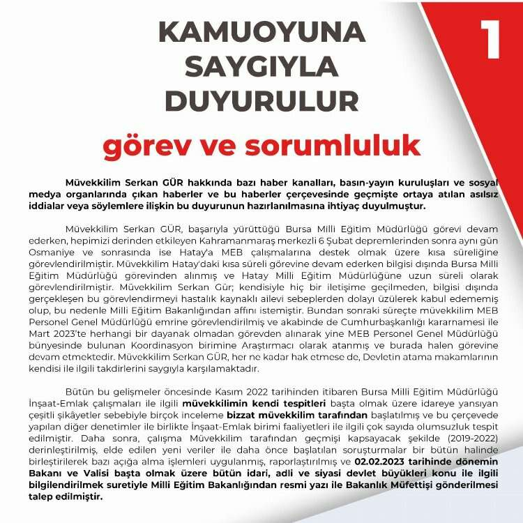 Bursa'daki büyük yolsuzluğu ortaya çıkardığı için istifaya zorlandığı iddia edilen ve görevden alınan Bursa İl Milli Eğitim Müdürü Serkan Gür cephesinden yeni bir açıklama geldi.