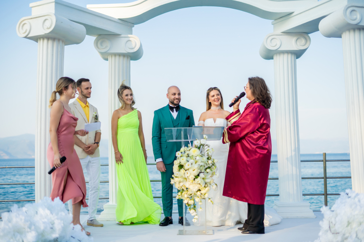 Birbirine çok yakışan genç çift muhteşem deniz manzarası eşliğinde hayatlarını birleştiren imzayı attı. Şimdiye kadar yüzlerce çiftin düğün fotoğraflarını çeken Meltem Say “Şimdi objektif karşısına geçme sırası bana geldi. Düğün fotoğraflarımı herkes merak ediyordu. Bu zamana kadar hep gelinlerime fikirler veriyordum.