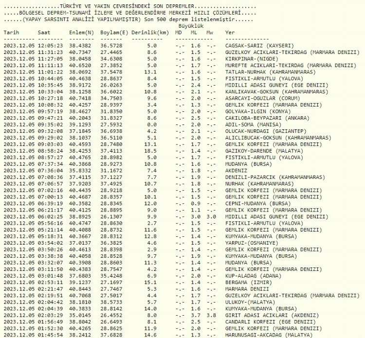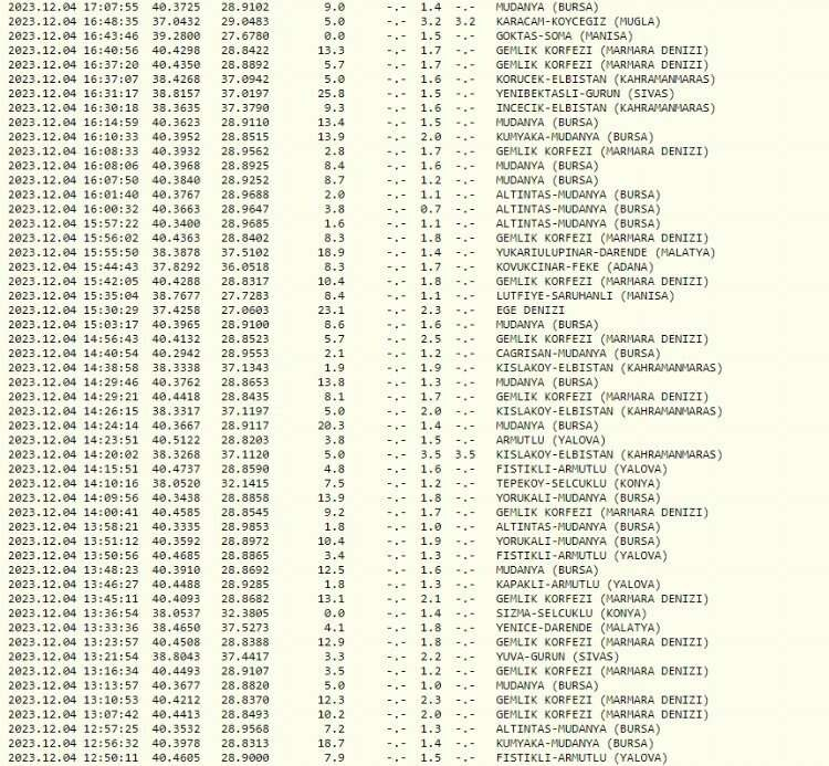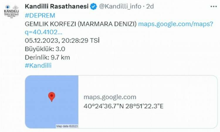 Kandilli Rasathanesi, Marmara Denizi Bursa Gemlik Körfezi'nde 3.0 büyüklüğünde deprem meydana geldiğini duyurdu.