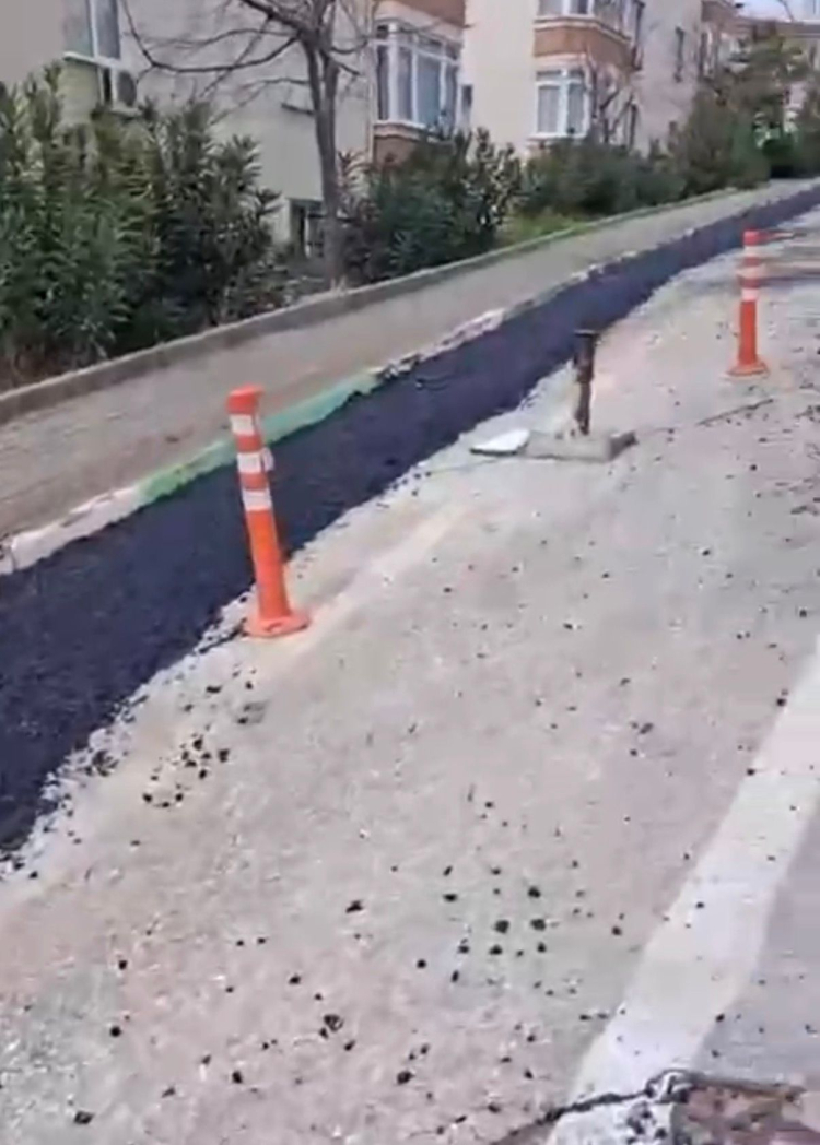 Yağmurla büyüyen çatlakların üzerine asfalt döküldüğü, çatlakların kapatılmaya çalışıldığı gözlendi.