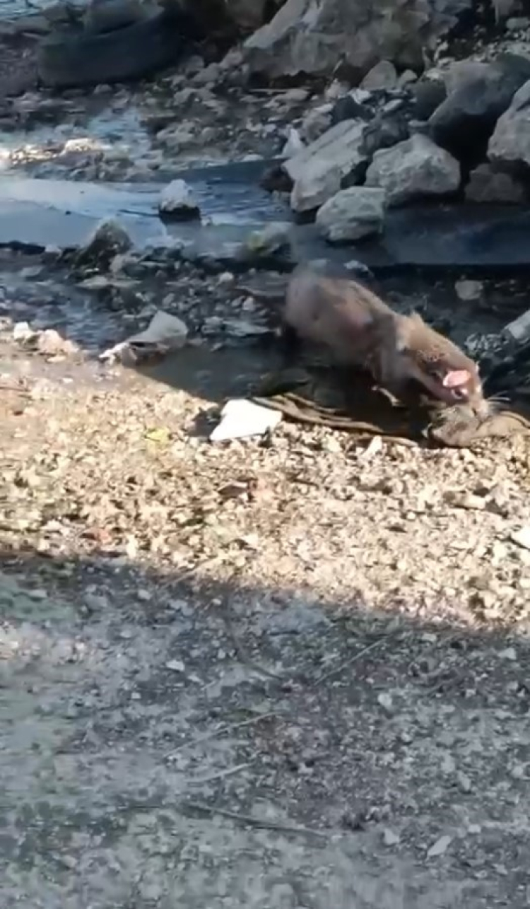Balıkçılar tarafından yakalanan balıklardan aşırıp yemeye başlayınca su samuru olduğu anlaşıldı. Kaçırdığı balıkları saklandığı kayalıkların altında afiyetle yiyen su samurunun bu mahareti mahallenin kedileri tarafından da ilgiyle izlendi.