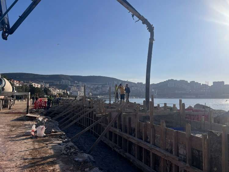 Bursa Büyükşehir Belediyesi, geçtiğimiz aylarda yaşanan fırtına ve deniz taşkınından özellikle afet boyutunda zarar gören Gemlik ilçesinin kıyı şeridindeki çalışmalarını hızla sürdürüyor.