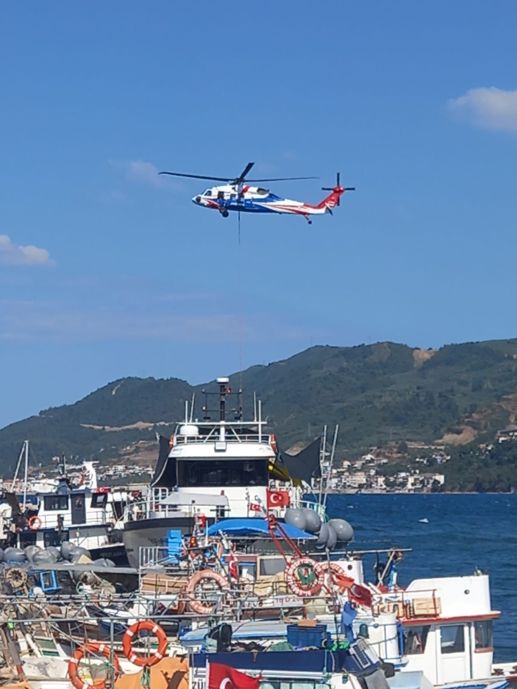 Mudanya sahilinden su alan helikopter, vatandaşlar tarafından da görüntülendi.