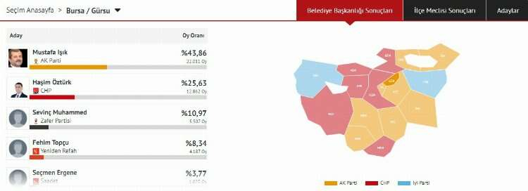 Kesin olmayan sonuçlara göre AK Parti'nin adayı Mustafa Işık, Bursa Gürsu Belediye Başkanı oldu.