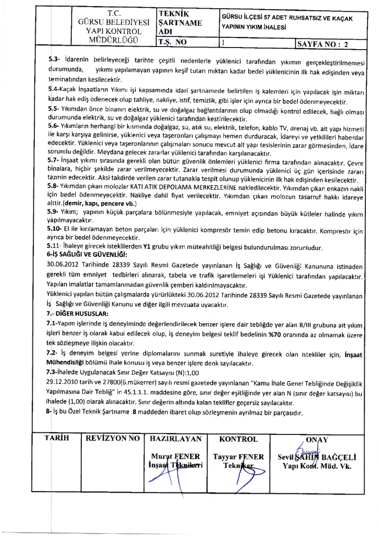 YIKIM İHALEYLE YAPILACAK