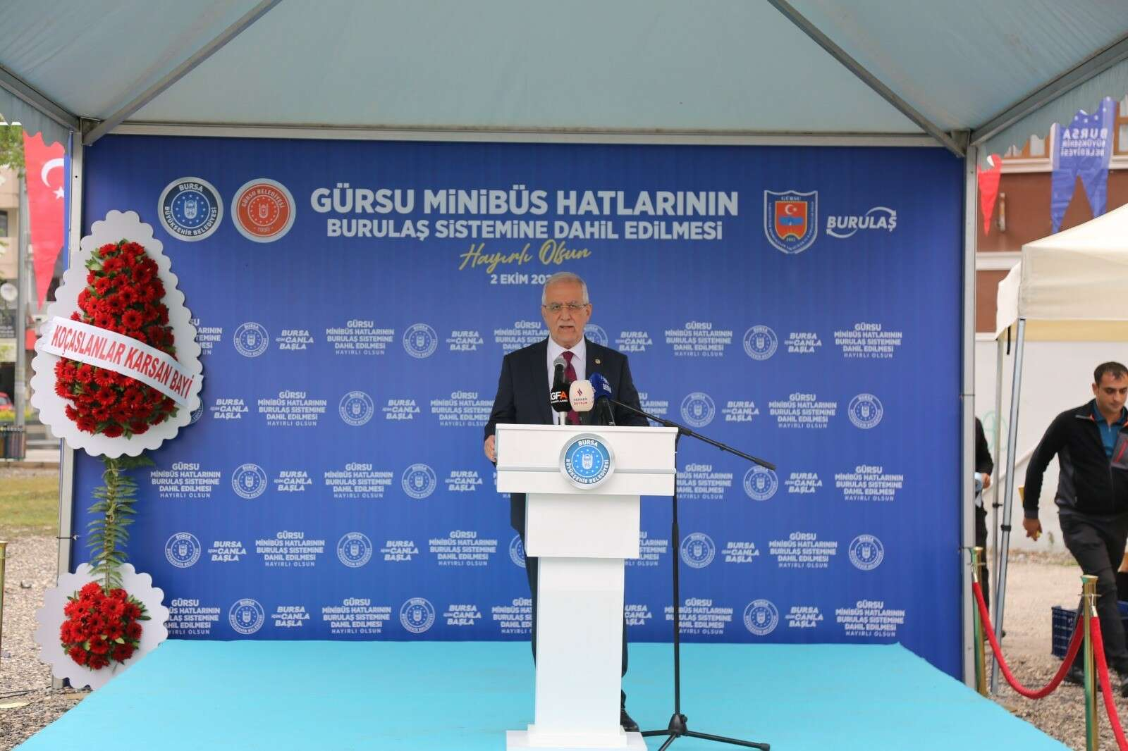 Bursakart Elektronik Ücret Toplama Sistemiyle hizmet verecek araçların Burulaş filosuna dahil olması nedeniyle düzenlenen törende konuşan Bursa Büyükşehir Belediye Başkanı Alinur Aktaş, “Ben göreve geldiğimde BURULAŞ’ın araç sayısı 1087’ydi. BURULAŞ’a bağlı şimdiye dek 2489 araçla hizmet veriyorduk, Gürsu ile bu sayı 2558’e yükseldi. Tek gayemiz vatandaşın huzurunu sağlamak; sabah vatandaşımızı işine sorunsuz, akşam da evine güvenle ulaştırmak. Gürsu halkımıza hayırlı uğurlu olsun” dedi.