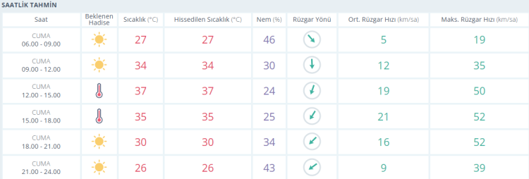 Salı: Aşırı sıcak, hava sıcaklığı 37 derece