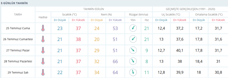 İŞTE BURSA İÇİN 5 GÜNLÜK HAVA DURUMU TAHMİNİ (25 TEMMUZ 2025)