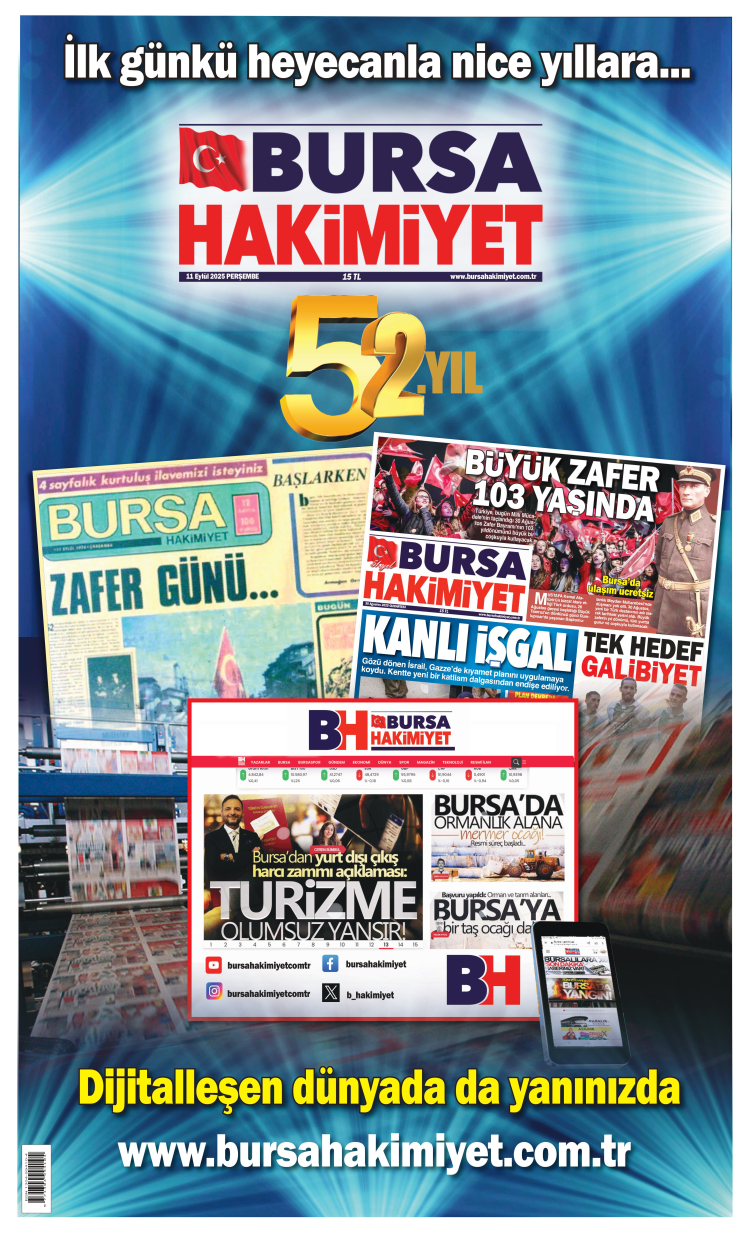 Bursa'nın amiral gemisi gazeteniz Bursa Hakimiyet, okurlarından aldığı güçle yarım asrı geride bırakmanın mutluluğuyla birlikte 52. yaşını kutluyor.