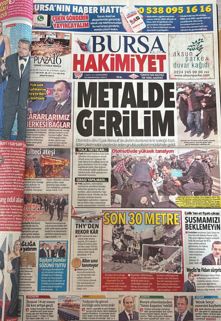 Bursa Hakimiyet Gazetesi'nin arşivinden tarihte bugün | 2 Mart...