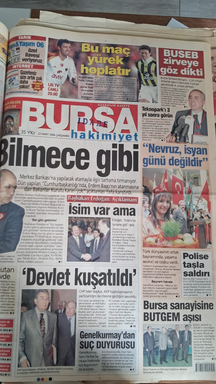 Bursa Hakimiyet Gazetesi'nin arşivinden tarihte bugün | 22 Mart...