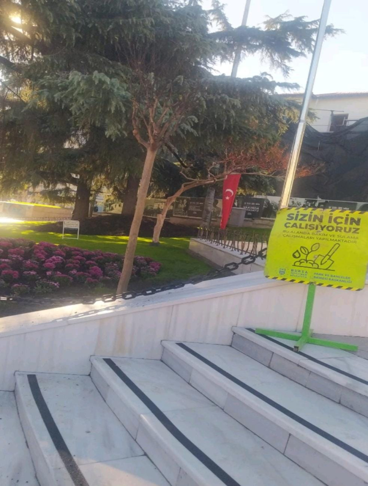 Bursa Büyükşehir Belediyesi Parklar ve Bahçeler Şube Müdürlüğü ekiplerimizce Atatürk Anıtı ve çevresindeki yeşil alanların bakım, temizlik ve düzenleme çalışmaları düzenli olarak yapılmaktadır. Mevsimsel dönemlerde çiçek dikimleri ve kuruyan ağaç değişimleri planlı şekilde sürdürülmekte olup, oya ağacı değişimi 30.10.2025 tarihi itibarıyla tamamlanmıştır.