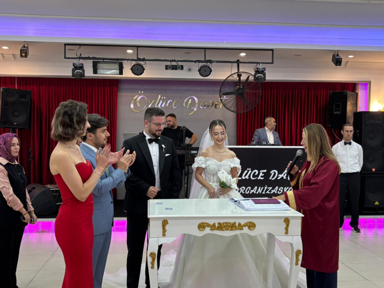 Birbirlerine evet diyerek bir ömrü paylaşmak istediklerini davetlilerin huzurunda kabul eden genç çifte, Bursa Hakimiyet Gazetesi olarak bizler de ömür boyu mutluluklar diliyoruz.
