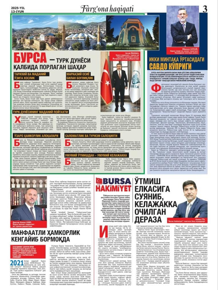 Özbekistan’ın doğusunda, ipek yollarının kalbinde yer alan Fergana bölgesinden bir grup gazeteci, Bursa’yı ziyaret edecek.