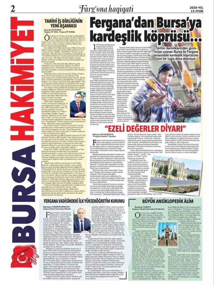 Binlerce kilometre uzakta ama aynı ruhun aynasında yansıyan iki şehir: Bursa ve Fergana.