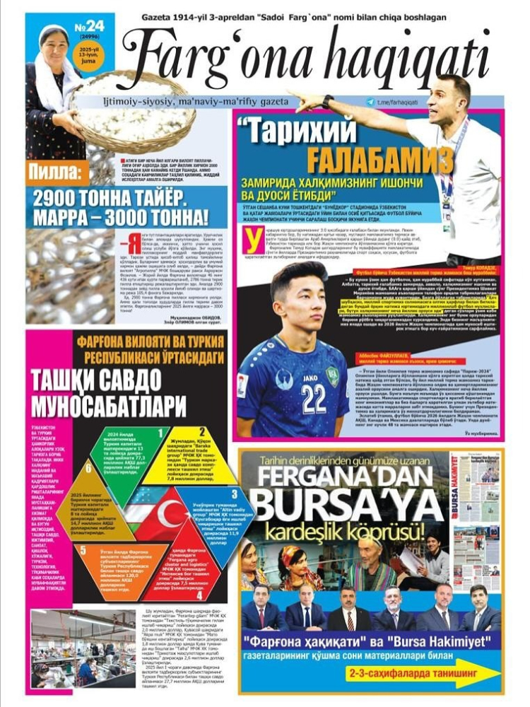 18 Haziran’da, Özbekistan’ın doğusunda, ipek yollarının kalbinde yer alan Fergana bölgesinden bir grup gazeteci, Bursa’yı ziyaret edecek.