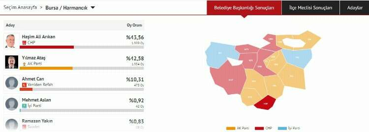 Sayımların tamamlanmasıyla kesin olmayan sonuçlara göre; seçimi CHP'nin adayı Haşim Ali Arıkan, Bursa Harmancık Belediye Başkanı oldu.