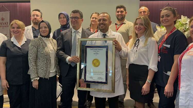 Törende konuşan Hayat Hastanesi Yönetim Kurulu Başkanı Dr. Ahmet Özkul, “Hak ederek oluşan bir belge önümüze geldi. Ben, hayırlı olsun diyorum. Bu hepimizin gayretiyle oldu, bütün arkadaşlarımızın, bütün personellerimizin, bütün birimlerimizin, yönetimden, şeflerden, doktorlardan, yardımcılardan, sağlık personeline kadar fevkalade bir gayretle, böyle bir şeyi hak etmişlik var. Bu hak etmişliği, Murat Bey bölgenin adına Dubai'den gelerek, bizlere sunmayla bir kere daha bu kurumu ödüllendirmiş oldu” dedi.