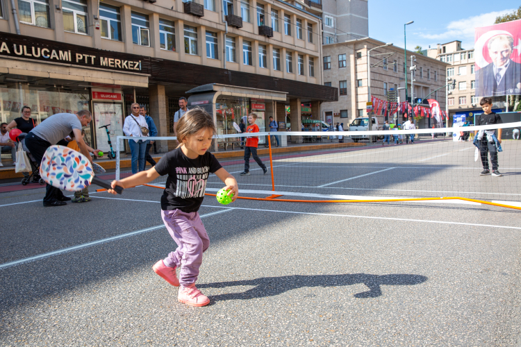 Kentleri ve belediyeleri sürdürülebilir ulaşım tedbirleri alma konusunda desteklemek, herkesin güvenli ve rahat bir şekilde hareket edebilmesini teşvik etmek amacıyla 16-22 Eylül tarihleri arasında kutlanan Avrupa Hareketlilik Haftası, Bursa’da da dolu dolu etkinliklerle kutlandı. Sabah yürüyüşlerinden güvenli bisiklet ve e-skuter sürüş eğitimlerine, spor etkinliklerinden sanatsal programlara kadar birçok aktivitenin yapıldığı hafta, Heykel Atatürk Caddesi’ndeki ‘Arabasız Gün Etkinliği’ ile sona erdi. Saat 10.00 ile 12.00 saatleri arasında araç trafiğine kapatılan Atatürk Caddesi, sadece bisiklet ve yaya ulaşımına açıldı. Ulucami ile Valilik Binası arasında yapılan programda, bisiklet ve e-skuter sürüş eğitimlerinin yanı sıra 4 farklı alanda gazoz kapağı, cilli, yılan, ip atlama, yakar top, don ateş, istop, kuyruk kapmaca, mendil kapmaca, yağ satarım bal satarım, kutu kutu pense, körebe, davul zurna gibi sokak oyunları oynandı. Araba sesleri ile değil, çocuk gülüşleri ile dolan Heykel’de Bursalılar eğlence dolu bir gün geçirdi.