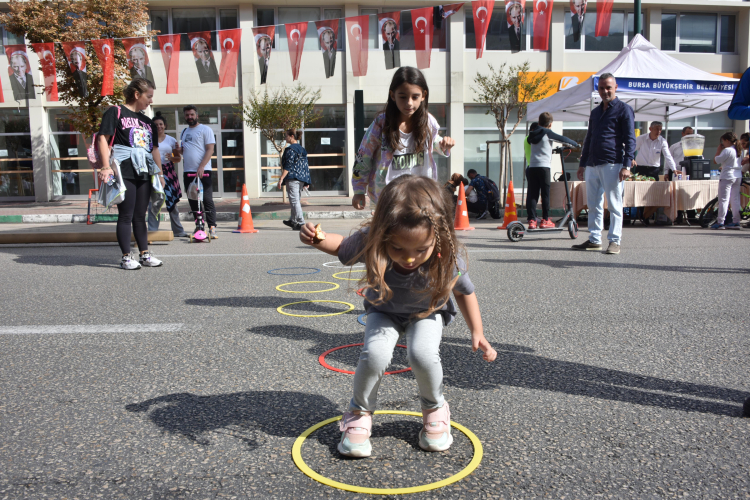 Bursa’da, Avrupa Hareketlilik Haftası etkinlikleri kapsamında araç trafiğine kapatılan Heykel Atatürk Caddesi, çocuk sesleriyle şenlendi.