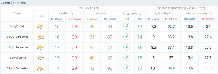 İŞTE BURSA İÇİN 5 GÜNLÜK HAVA DURUMU TAHMİNİ (9 EYLÜL 2025)