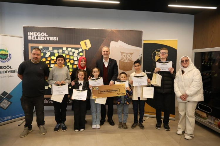 Bursa İnegöl Belediyesi, Kütüphaneler Haftası etkinlikleri kapsamında 5 Nöbetçi Kitaphanenin En’lerini belirledi. “En Çok Kitap Okuyan” ve “En İyi Kullanıcı” seçilen gençler, ödüllerini Belediye Başkanı Alper Taban’dan aldı. Başkan Taban, ödül töreninde yeni kitaphanelerin de müjdelerini verdi.