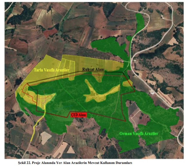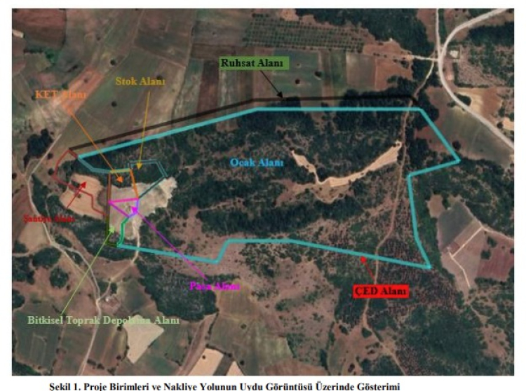 Faaliyetin yürütüleceği hammadde üretim izin alanı 25,92 hektar, belirlenen ÇED alanı ise 24,87 hektar olarak açıklandı.