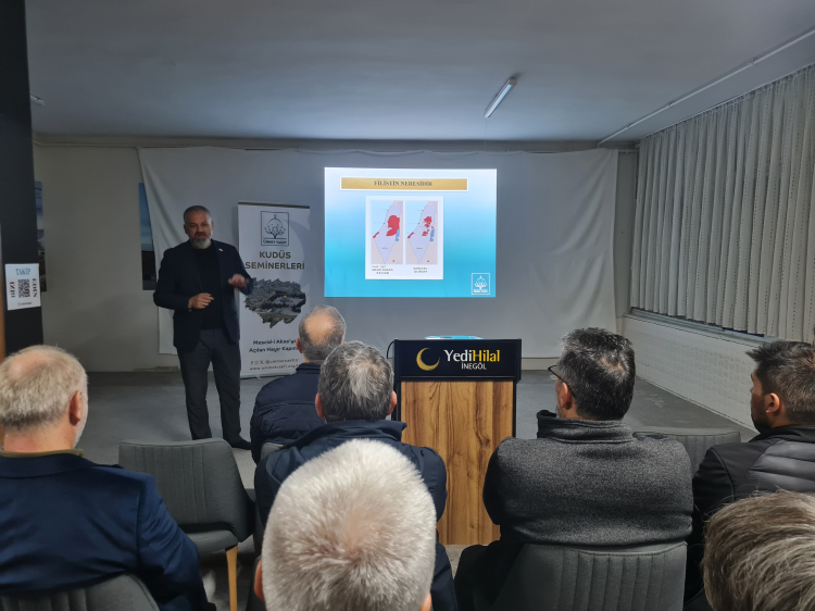 "Özgür Kudüs Seminerleri" başlığıyla düzenlenen etkinliğe dernek üyeleri, gönüllüler ve özellikle gençler yoğun ilgi gösterirken, salonda büyük bir coşku ve bilinçlenme atmosferi yarşandı.