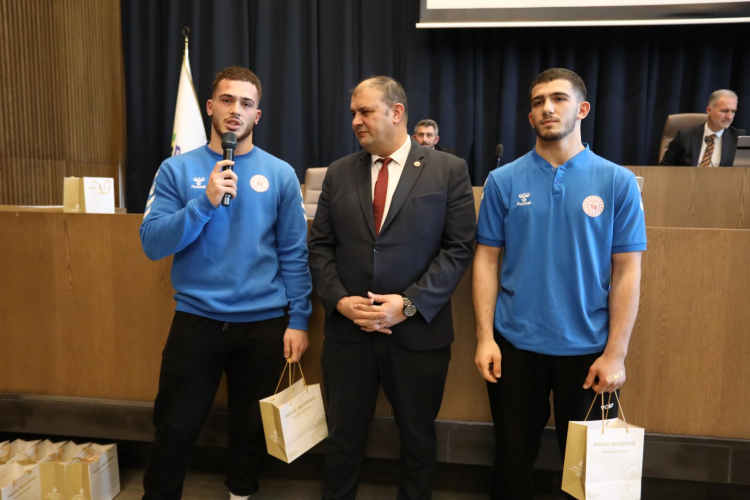 Ödüllerini meclis üyelerinden alan sporcular kendilerini onure eden belediye meclisine teşekkür etti. Belediye Başkanı Alper Taban da Soner Aktepe’nin ödülünü takdim etti. Burada kısa bir konuşma yapan Başkan Taban, “Bugün gerçekten gururlandık. İnegöl’de eş zamanlı yapılan müsabakalar, yarışmalar etkinlikler vardı. O kadar büyük bir güce sahibiz ki. Herkesin de bu gücün farkında olmasını istiyorum. Genç bir nüfusumuz var. Öğrencilerimiz var, eğiticilerimiz var. Herkesle ne kadar gururlansak azdır. Herkes kendi alanında bir başarı hikayesi yazıyor. Daha başka başarı hikayeleri de yazacağız inşallah. Buna inanıyorum. Amacımız İnegöl’ümüzün haklı gururunu tüm dünyaya duyurmak. Burada Soner arkadaşımızın da ekstra bir özverisi var. Nerede çalışırsa çalışsın bizlere hep teşekkür getirdi. Soner tüm görev bölgelerinde standartların üzerine çıkıyor. Soner’in ekstra bir gayreti var. Bunun yanı sıra bulmuş olduğu, kendisine ait olmayan bir eşyayı da insanlık örneği göstererek sahibinin bulunup teslim edilmesi için getirdi. Ben hem mesai arkadaşımızı hem sporcularımızı kutluyorum. Başarılar diliyorum” dedi.
