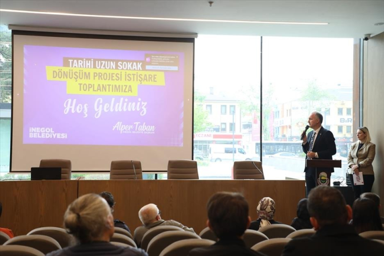 İnegöl Belediye Başkanı Alper Taban toplantıda yaptığı konuşmada projenin uygulanmasıyla birlikte tarihi dokusu korunarak yeniden şekillenecek olan Uzun Sokağın sadece estetik bir dönüşüm değil, aynı zamanda ticari hareketliliğin de artacağı bir alan haline geleceğini vurguladı. Başkan Alper Taban konuşmasında, gece gündüz tüm herkesin bu sokağa ilgisinin artacağını söyleyerek ; ''Uzun zamandır üzerinde çalıştığımız çarşı merkezimizin dönüşüm projesiyle ilgili istişare toplantısında esnaflarımızla bir araya gelmek istedik. Sadece Uzun Sokak olarak değil genel anlamda yapacağımız çalışmalarda konunun ilgilileri ile bir araya gelmeyi ve fikir alışverişinde bulunmayı önemsiyoruz. Ben yaptım oldu değil, birlikte yapalım olgusu üzerindeyiz. Çarşılarımız da gelenekten gelen alanlar. Bu alanların içerisinde güncellemeler yaparak yeniden daha güçlü bir şekilde vatandaşlarımızın tercih ettiği merkezler haline getirmek için çalışmalar yürütüyoruz. Görselliği, dahil edilecek donatı alanlarıyla da yeniden bir çekim gücü oluşturacağı düşüncesindeyiz. Mimar arkadaşlarımız ile proje üzerinde yapılan değerlendirmede 5 etap halinde çalışmaların yürütülmesini öngörülüyor. Uzun Sokağın zaten bir çekim gücü var ancak yapmak istediğimiz güncellemelerle bu çekim gücünü daha da güçlendirmek istiyoruz. Vatandaşlarımıza ‘’buranın havası değişmiş, muhakkak uzun sokağa da uğramalıyız’’ düşüncesini elde ettirmek istiyoruz. Projeyi etap etap gerçekleştirmek istiyoruz. Sarraflar Çarşısı, İshakpaşa Camii Çevresi gibi alanları da peyderpey dönüşüme dahil etmek istiyoruz. Bu bölgelerin gecesi ve gündüzüyle her halükarda vatandaşlarımızın geldiği uğrak noktalar olmasını istiyoruz.'' dedi.