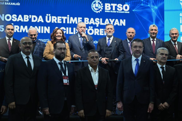 Konuşmaların ardından BTSO Yönetim Kurulu Başkanı İbrahim Burkay, Meclis Başkanı Ali Uğur, Sanayi ve Teknoloji Bakanı Fatih Kacır ile Ticaret Bakanı Prof. Dr. Ömer Bolat, Cumhurbaşkanı Recep Tayyip Erdoğan'a Osmanlı'nın sembolü çınar ağacının işlendiği tablo hediye etti. Cumhurbaşkanı Erdoğan ardından da protokol üyeleri ile birlikte TEKNOSAB'da üretime başlayan 15 firma için kurdele kesti.