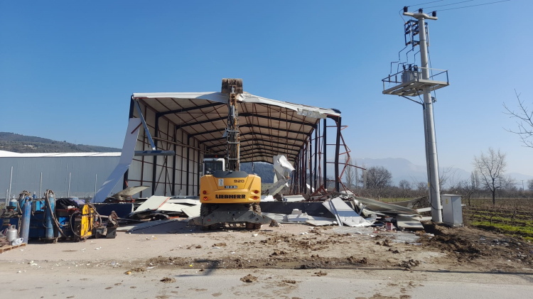 Yapı Kontrol Müdürlüğü ekipleri tarafından İsmetiye Mahallesi’nde tarım arazisi üzerine kaçak olarak yapıldığı belirlenen depo, iş makinesi ile yıkılarak kullanılmaz hale getirildi.