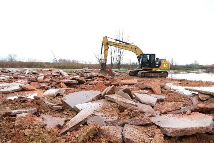 Tarım arazilerini korumak ve kaçak yapılaşmanın önüne geçmek amacıyla çalışmalarını aralıksız sürdüren Bursa Osmangazi Belediyesi, birinci sınıf tarım arazisine kaçak olarak yapılan depo, inşaat aşamasındayken tespit edilerek yıkıldı.