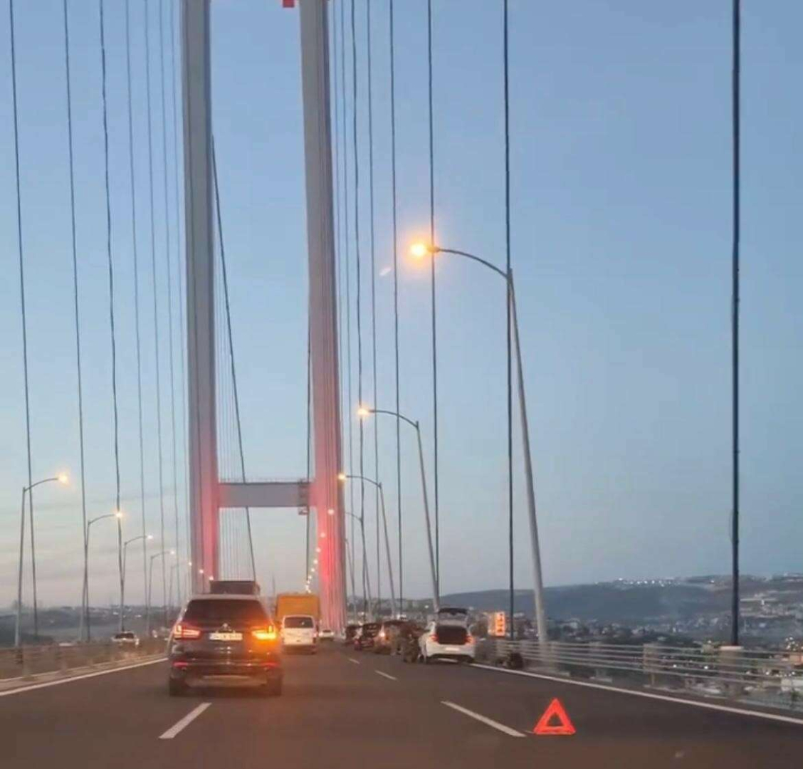 Osmangazi Köprüsü geçişinde Bursa'dan İstanbul istikametinde seyir halinde olan 10'dan fazla aracın lastiği eş zamanlı olarak patladı.