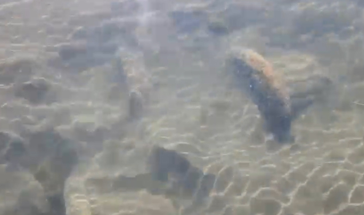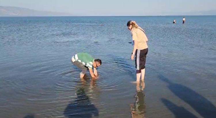 İznik Gölü’nün Orhangazi sahilinde serinlemek için suya giren kişi, suların çekildiği alanda çok sayıda büyük taş fark etti.