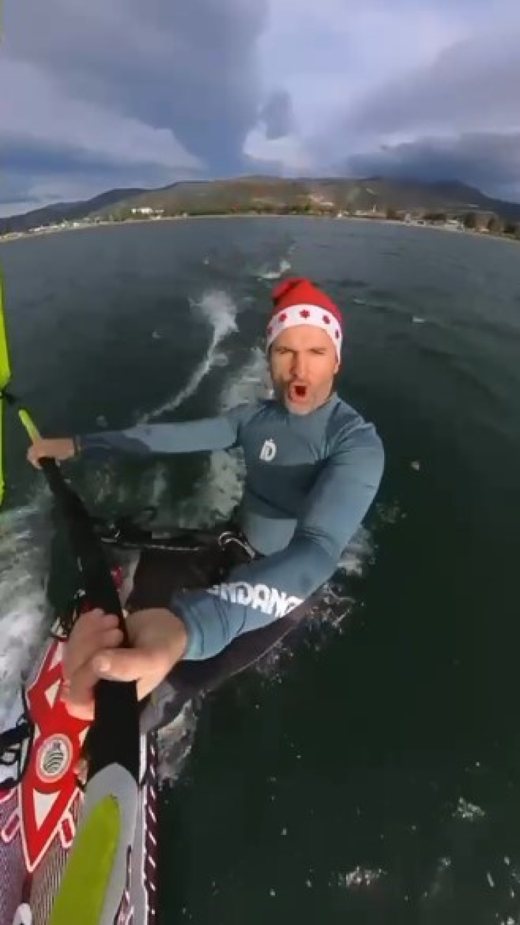 İznik’te yelken antrenörlüğü yapan Mustafa Öncü, yeni yılı kutlamak için 2025' in ilk sabahı kışın ortasında yelken sörfü yaptı.