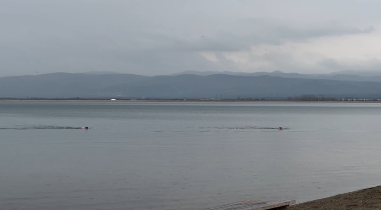 Yeni yılın ilk sabahı buz gibi gölde yüzenleri görenler ise şaştı kaldı.
