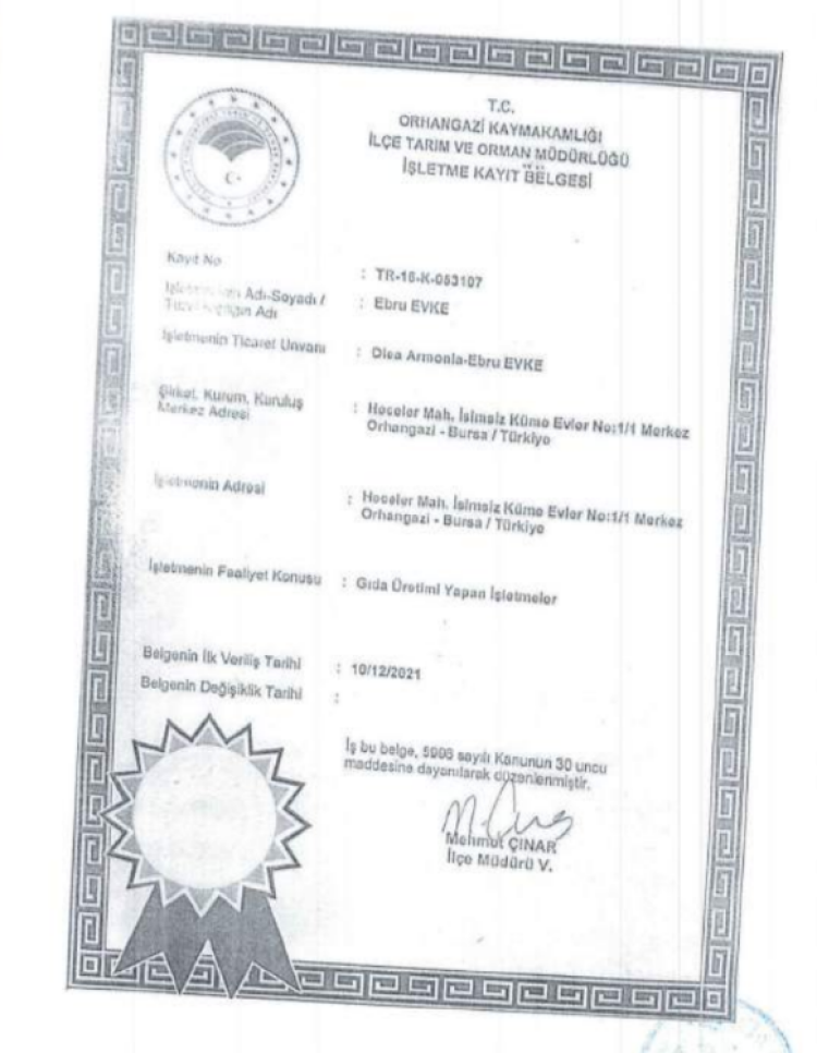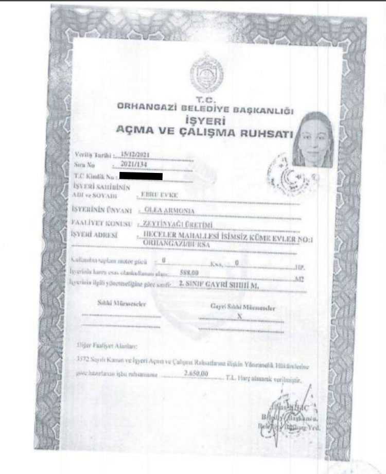 Bursa Valiliği tarafından yapılan açıklamada, "Bursa ili, Orhangazi ilçesi Heceler Mahallesi H22B09.C.C Pafta, 107 ada, 20 numaralı parselde kayıtlı 5880 metrekare yüzölçümlü alan mevkiindeki Ebru Evke Akbaş tarafından yapılması planlanan Zeytinyağı Üretim Tesisi projesi ile ilgili olarak Bakanlığımıza sunulan PTD Dosyası incelenmiş ve değerlendirilmiştir ÇED Yönetmeliği'nin 17. maddesi gereğince Zeytinyağı Üretim Tesisi projesi'ne Valiliğimizce 'Çevresel Etki Değerlendirmesi Gerekli Değildir' kararı verilmiştir." ifadeleri kullanıldı.