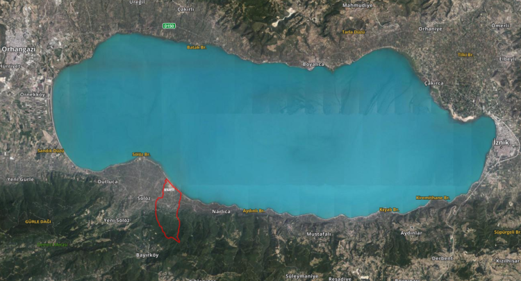 İznik Gölü'ne 432 metre mesafede olan parsel, 1/100.000 Ölçekli Çevre Düzeni Planında tarım alanında kalıyor.