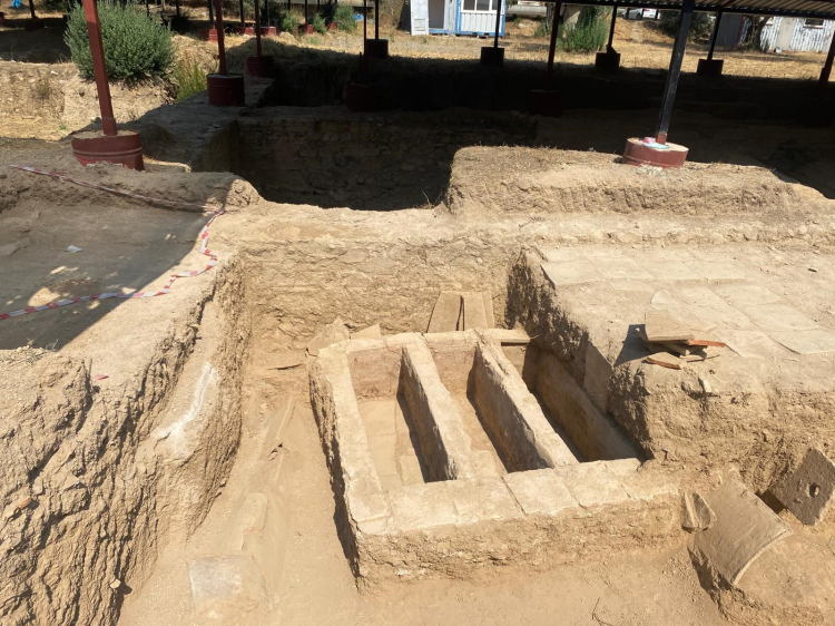 İznik Müze Müdürlüğü İznik Hisardere Nekropol alanında devam eden kazılarda 3 yeni mezar alanı ile birlikte bazilikaya ait mozaikli bölüm açığa çıkarıldı.