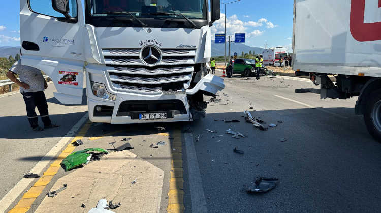 Bursa'da tır ile otomobilin karıştığı kazada 4 kişi yaralandı.