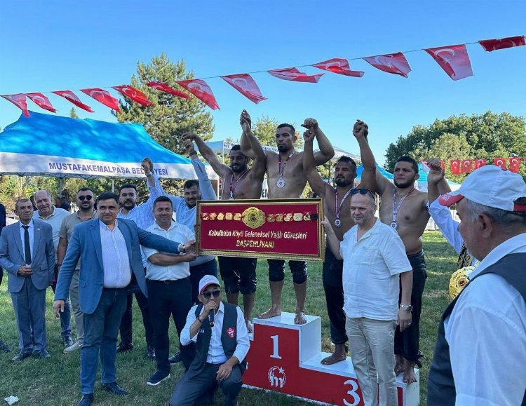 Bursa Mustafakemalpaşa'nın kırsal Kabulbaba Mahallesi'nde bu yıl 348'incisi düzenlenen Geleneksel Yağlı Güreş Şampiyonası'nda Başpehlivan Yusuf Can Zeybek oldu.