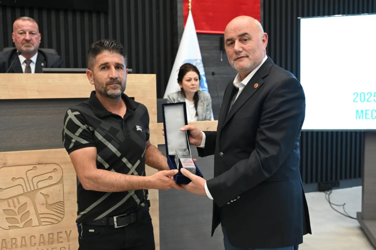 Toplantıda ilk olarak Fen İşleri Müdürlüğü’nde görev yapan İsmail Taş, üstün performansı ve özverili çalışmaları dolayısıyla “Ayın Çalışanı” plaketi ile onurlandırıldı. İsmail Taş’a plaketini AK Parti Meclis Üyesi Sabahattin Yıldız takdim etti.
